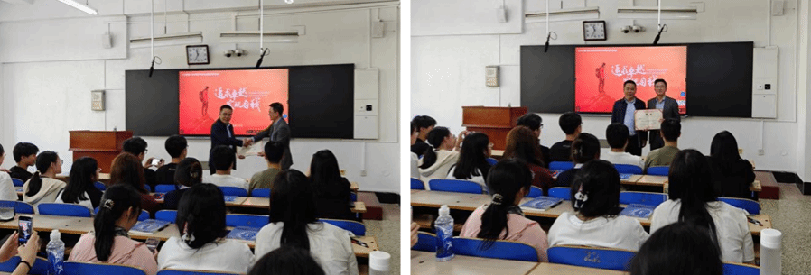 最后,院长杨秋生向姜峰颁发了聘书,聘任姜峰为我校兼职教师。