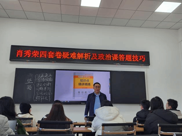 本次培训杨院长以解析肖秀荣四套卷重点难点问题为切入点,向广大考生分析了试卷知识考点分布,梳理考研政治复习的整个知识体系,对知识体系中的重点难点问题进行剖析讲解,通过分析典型题讲授不同题型的答题技巧,为广大考生做切实可行、实操有效的考研政治提分规划。与会同学纷纷表示杨院长讲授简单明了、一语中的,学习中的疑惑一下豁然开朗,在冲刺的最后阶段经过梳理后,心中感觉踏实很多。