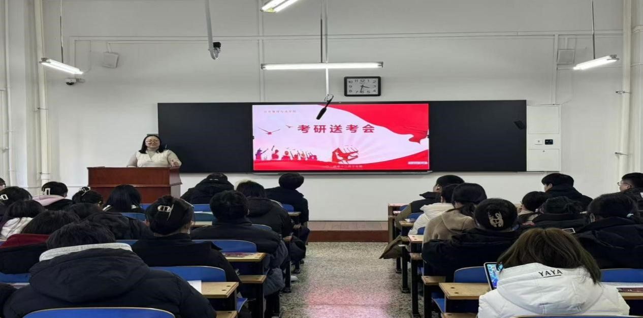 党委书记于海军发表了送考致辞,对考研学子们的努力与坚持予以高度的肯定,鼓励他们以自信从容之姿应对挑战,为梦想全力以赴。此后,与会同学和老师还就考试技巧、时间管理、心理调适等内容进行探讨和交流,为同学们提供了实用且具有针对性的应考指导。