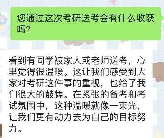 学风建设和心理育人工作的重要组成部分。送考不仅仅是一种形式,更是一种强大的精神支持,是对学生的关爱,传递出的是对知识的尊重和对追求梦想的肯定。它激励着每一位考研学子勇敢前行,为实现自己的人生目标而努力拼搏。祝福考研学子们在考场上发挥出最佳水平,迈向成功的彼岸。