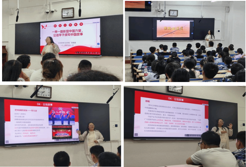 在博雅楼312开展新生入学教育之爱国爱校荣校教育讲座。本次讲座以《一带一路彰显中国力量,公法学子续写中国故事》为主题,以穿越河西走廊重走丝绸之路为线索,讲述环沙漠铁路、高速公路、贸易口岸、公路、电网铁塔等基础设施建设在一带一路战略布局中的重要作用和对我们生活的影响,并讲述公法毕业生西部建设中发扬“朴实无华、坚韧顽强、无私奉献”的太阳石精神,坚守岗位、投身于建设发展的动人故事,引导广大新生早日树立职业目标,锚定方向,不懈努力。