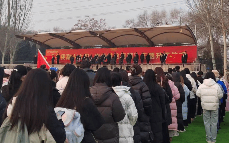 学生代表进行主题为《我的祖国》国旗下演讲,赞美祖国的大好山河和优秀的传统文化,表达对祖国的热爱和对新时代“六地”建设的壮志。接着一首《上春山》展示了同学们勃勃生机与无尽活力,体现了积极向上、充满希望的人生态度;《永远为你创造辉煌》的校歌,更是唱出了青年学子为学校发展不断拼搏创新的豪情。