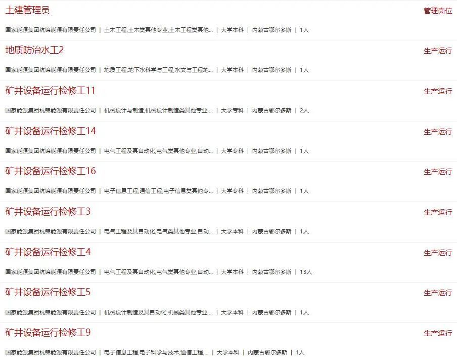 人力资源招聘网站(//zhaopin.chnenergy.com.cn)校园招聘栏“统招”入口查询岗位信息。
